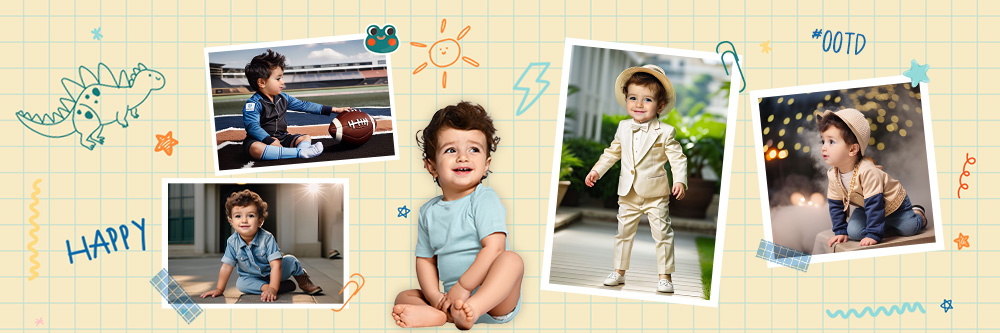With MyEdit’s outfit generator, you can create outfits for any occasion. Dress up your kids in formal wear, casual looks for the beach, or even specific textiles like leather or tweed. Both little boys and little girls can have a limitless wardrobe with coordinated AI outfits. Anytime you need to dress your kids up in new outfits, simply scroll through the AI editor until you find the perfect prompt.