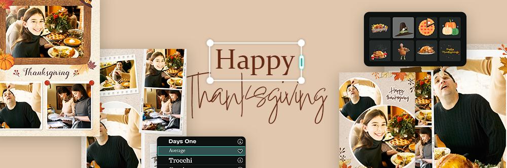 PhotoDirector’s all-in-one photo editing app has a huge collection of photo editing features to help you create your Thanksgiving card. With its AI sticker generator, you can personalize your stickers and emojis, too. Then, use its many font styles to write a “Happy Thanksgiving” message in one of five different languages! >>More Details