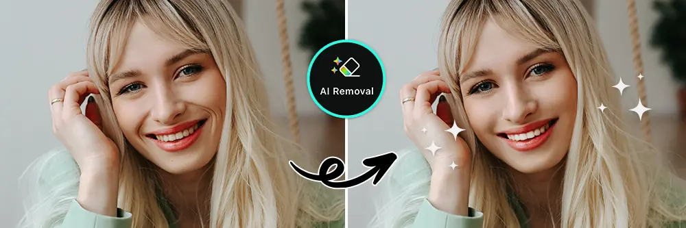 AI Removal allows you to highlight your smile lines and make them appear much softer. Upload your chosen photo, make your selection, and watch the AI tool enhance your skin. You’ll have a smile you can be proud of with any picture you choose.