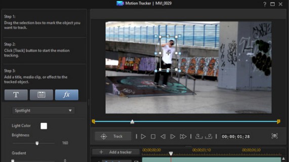 Motion tracking is a new feature in PowerDirector 14 that allows you to track multiple people or objects in footage. This kind of technique is widely used in action sports videos or sporting events. For example, a name can be added that follows the athlete’s moving path, or spotlight effect is added in order to highlight a moving ball or person.