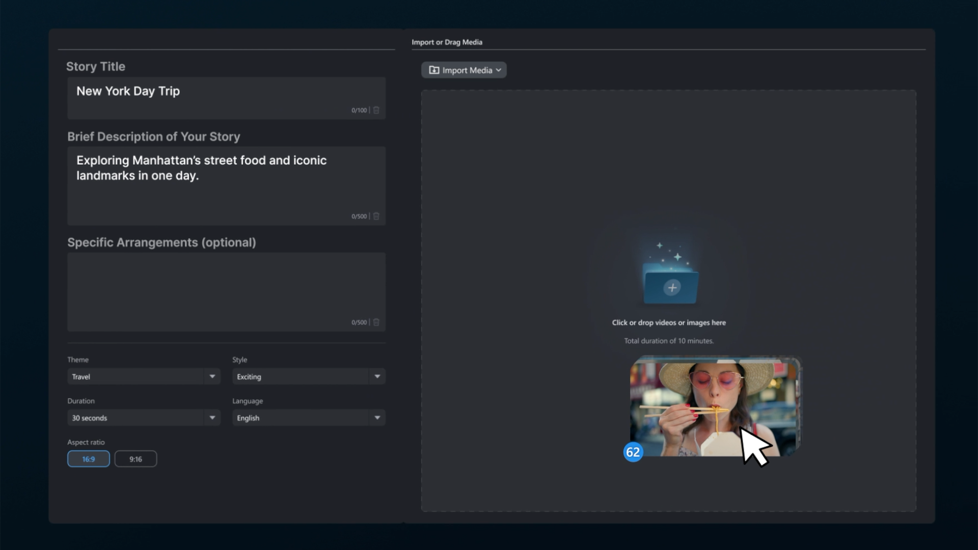 Learn how to use AI Storytelling to auto-generate scenes, subtitles, voiceovers, and music—and refine them before exporting or editing on the timeline.