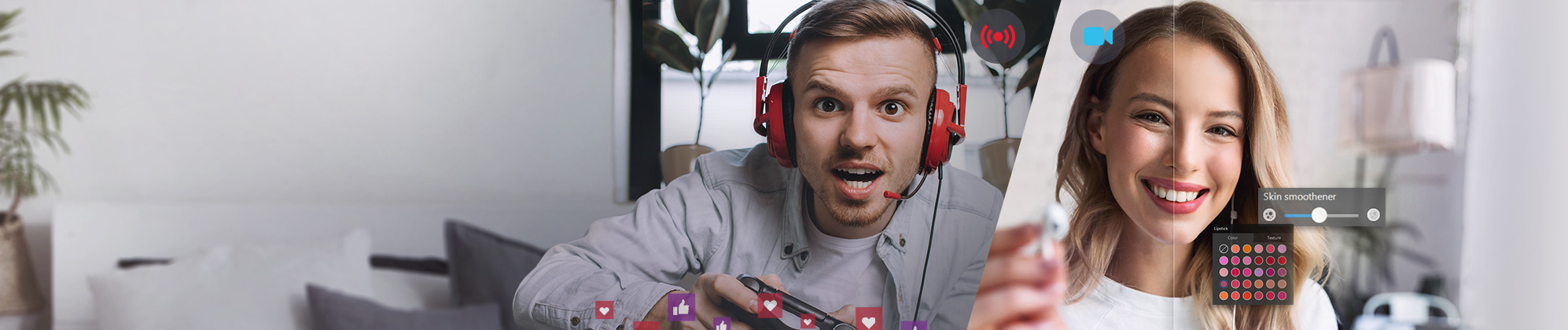 Use YouCam during your live streams to engage with your community of followers in a uniquely compelling way and grow your fan base. YouCam works with popular video recording, broadcasting and live-streaming services such as Twitch, Facebook Live, YouTube Live, OBS Studio, XSplit, and Wirecast.