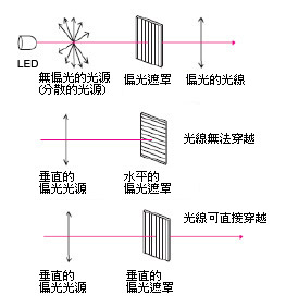 我們都瞭解到,光線是以波長方式進行移動,因此當遭遇垂直或是水平的偏光濾鏡後將會產生折射。當光線經過具備垂直過濾的濾鏡或遮罩,則可穿越過下一個同樣是垂直過濾的濾鏡或遮罩,卻無法穿越使用平行過濾的濾鏡或遮罩。