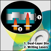 A disc can also contain multiple layers of data, dependent on how thick the optical disc is. In conventional DVDs we see this with dual-layer discs, which can hold roughly twice the capacity of a single layered disc.