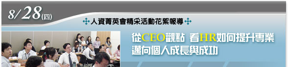 「人資菁英會」於 8月28日再度熱鬧登場。本次活動中,訊連科技秉持「經驗、交流、成長」的宗旨,特別邀請訊連科技張華禎總經理,分享CEO 眼中 HR 部門應該具備的態度與能力,並請人資專家蘭堉生顧問,帶領所有與會來賓共同探討HR如何透過專業提升,創造個人與企業雙贏。