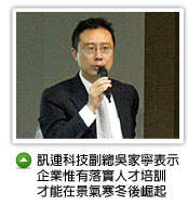 訊連科技副總經理吳家寧認為,許多企業選擇裁員來因應不景氣的衝擊,卻忽略裁員帶來的影響就如同兩面刃,如何在裁員瘦身的同時,又能留下核心人才,成為企業主最重要的課題,畢竟人才就像是企業的雙腳,企業惟有落實人才培訓與管理作業,才能在度過景氣寒冬之後,擁有再度躍起的力量。