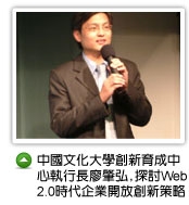 最後,中國文化大學創新育成中心執行長廖肇弘表示,數位學習從1.0到2.0的演變過程,其實就是推(push)與拉(pull)的不同,傳統學習形態是push員工去學習智慧,而數位學習2.0則是將員工腦海中的智慧Pull出來,與其他學員共享,透過知識共享的過程中,創造雙倍學習效益。