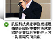 在eHRD領域裡,大家熟知的職能、能力、培訓與績效管理等制度與系統都是基礎建設,而其最終目的是要協助企業達成人才管理與接班人計畫的目標。吳副總表示,國外不乏接班人計劃的成功案例,但在台灣的成功故事卻是屈指可數。透過人資菁英會的經驗分享與腦力激盪,希望人資夥伴能對這個眾所注目的議題有更深的暸解。
