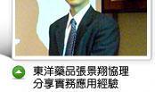 企業分享東洋藥品導入績效管理系統的實務經驗 研討會最後就是備受期待的企業分享時間,由台灣東洋藥品人力資源部張景翔協理分享實施績效管理制度的經驗心得與實務作法。台灣東洋藥品從一個注重製造和銷售的傳統學名廠逐步轉變,躍升為今日以行銷導向新藥開發為主的國際藥廠,為透過績效管理落實組織目標作了最佳典範。