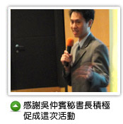 在吳家寧副總的開場致詞後,接著由財團法人中華人資管理協會祕書長吳仲濱為大家致詞,吳祕書長指出,今年5月份帶領人資協會會員至訊連進行參訪活動,當時便對訊連的企業文化及蘭堉生老師的獨特見解留下深刻印象,所以積極促成這次活動,希望將人才管理相關知識分享予更多人資協會會員。