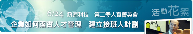 亞馬遜書店(Amazon.com)董事長傑夫‧貝佐斯說「人才是企業的一切」,奇異公司(GE)前董事長兼執行長傑克‧威爾許則說「人才是企業成長的重要關鍵」,這些頂尖企業CEO的態度,句句都說明了人才管理的重要性。繼上一季人資菁英會獲得熱烈迴響之餘,甫於6月登場的人資菁英會同樣延續人才管理之議題做深入的探討。此外,本次人資菁英會也是訊連首度與中華人資協會合作共同主辦,不僅提供貴賓更多學習的管道,更希望為協會會員與訊連客戶建立一個交流園地並從中獲得更大的收獲與成長。