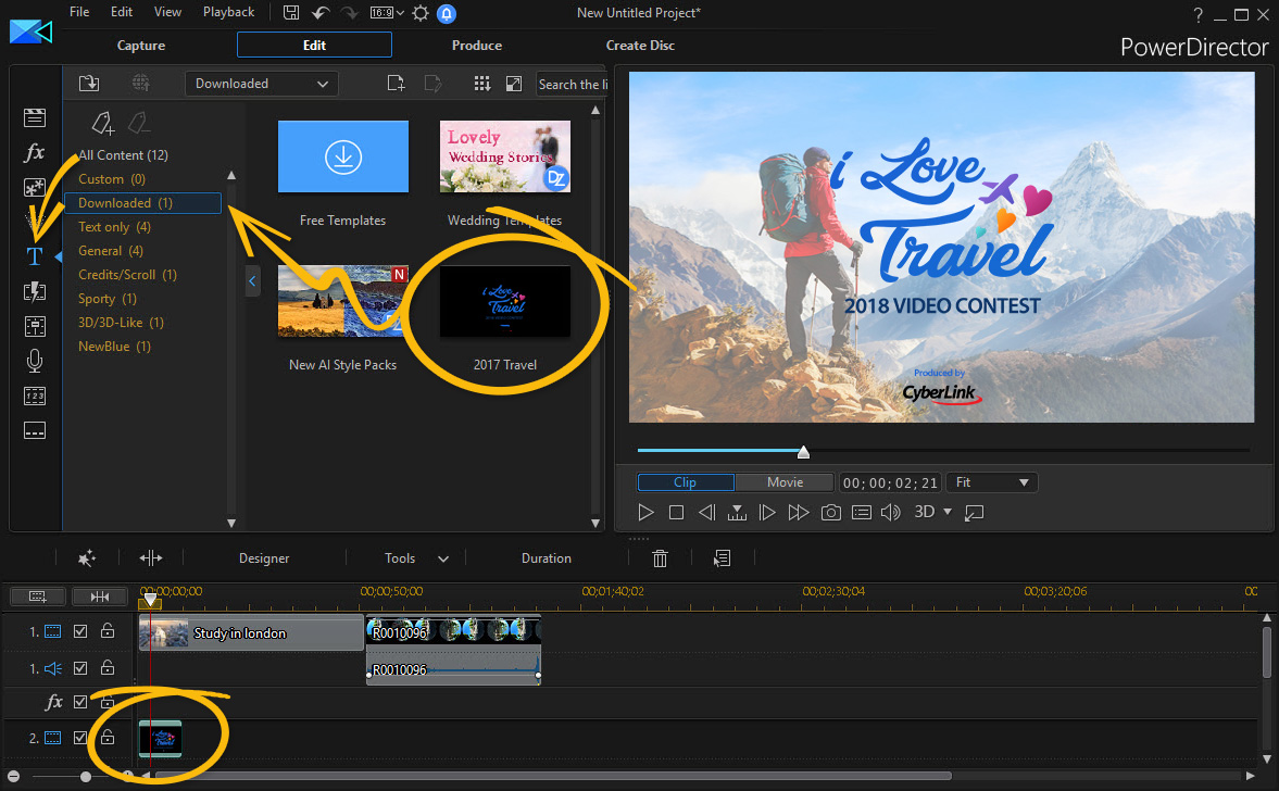 Download PowerDirector Trial Download Free Mobile App Download ActionDirector Trial How to Insert Opening Clip -