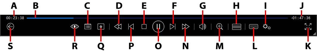 When playing back a movie disc in the BD/DVD Movie section of the Media Library tab, the playback controls display as follows: