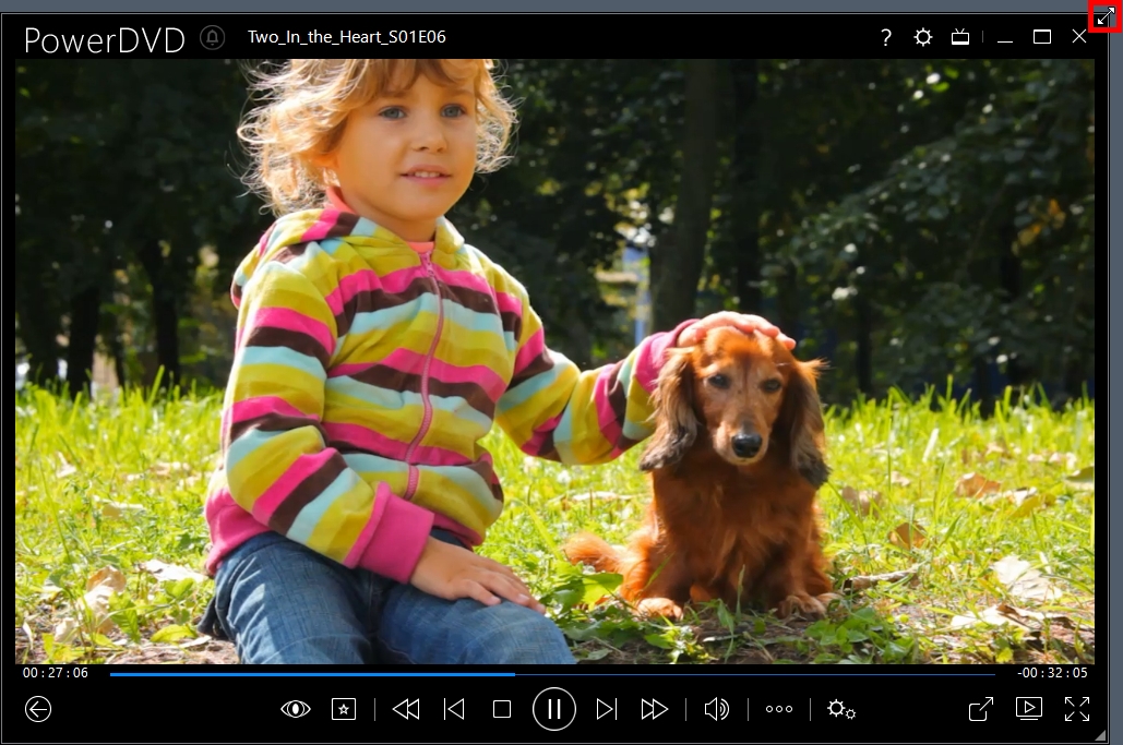 When playing movie files, TV shows, video files, and videos on YouTube/Vimeo, you can drag the edges of the CyberLink PowerDVD window to reduce it in size.