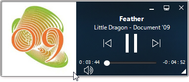 CyberLink PowerDVD will switch to the mini player and display the album art just above the task bar in Windows. Hover your mouse over the album art to display the available controls in the Mini Player.