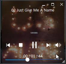CyberLink PowerDVD will switch to the mini player and display the album art just above the task bar in Windows. Hover your mouse over the album art to display the available controls in the Mini Player.