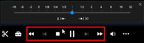 Drag the blue control slider left to increase the rewind speed up to 16 times the normal playback speed, or right to increase the forward speed up to 32 times. You can also click