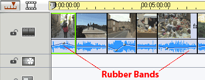 Timeline Rubber BandsYou can manually and quickly adjust your audio with rubber bands to fine tune video, music and voice tracks.
