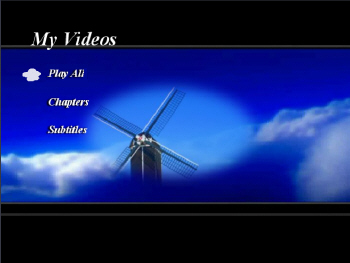 The chapter page contains either chapter thumbnail buttons or chapter text links. The exact content depends on which menu template you selected, whether you added chapters in the Chapter Room and how many buttons per page you selected.